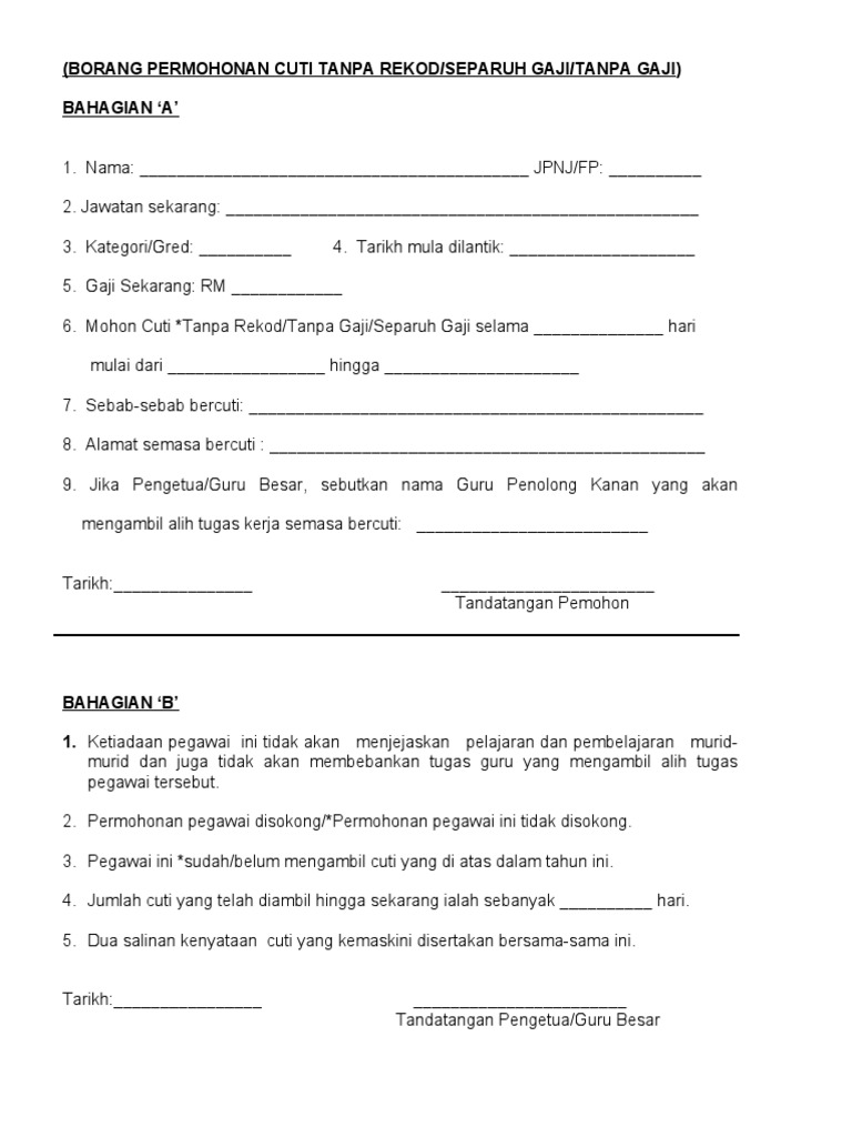 Borang Permohonan Cuti Tanpa Gaji Mengikut Pasangan Pdf